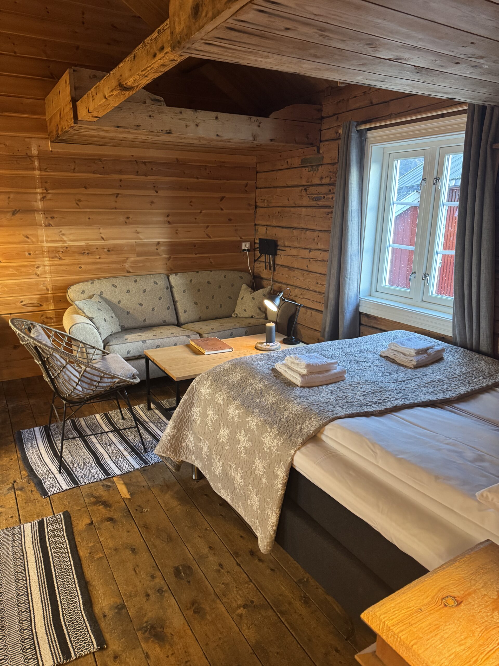 Nachdem wir genug vom Hagel hatten, machten wir uns auf den Rückweg nach Reine, wo wir den restlichen Nachmittag in einer der gemütlichen Fischerhütten verbrachten. Der Wind peitschte zwar immer noch und jeder dritte Schauer war mehr Hagel als Regen, aber in einer gemütlichen Fuscherhütte ist es so wunderbar entschleunigend: Kerzenschein, der warme Duft von frischem Tee und ein gutes Buch machen uns an solch verregneten Tagen glücklich.