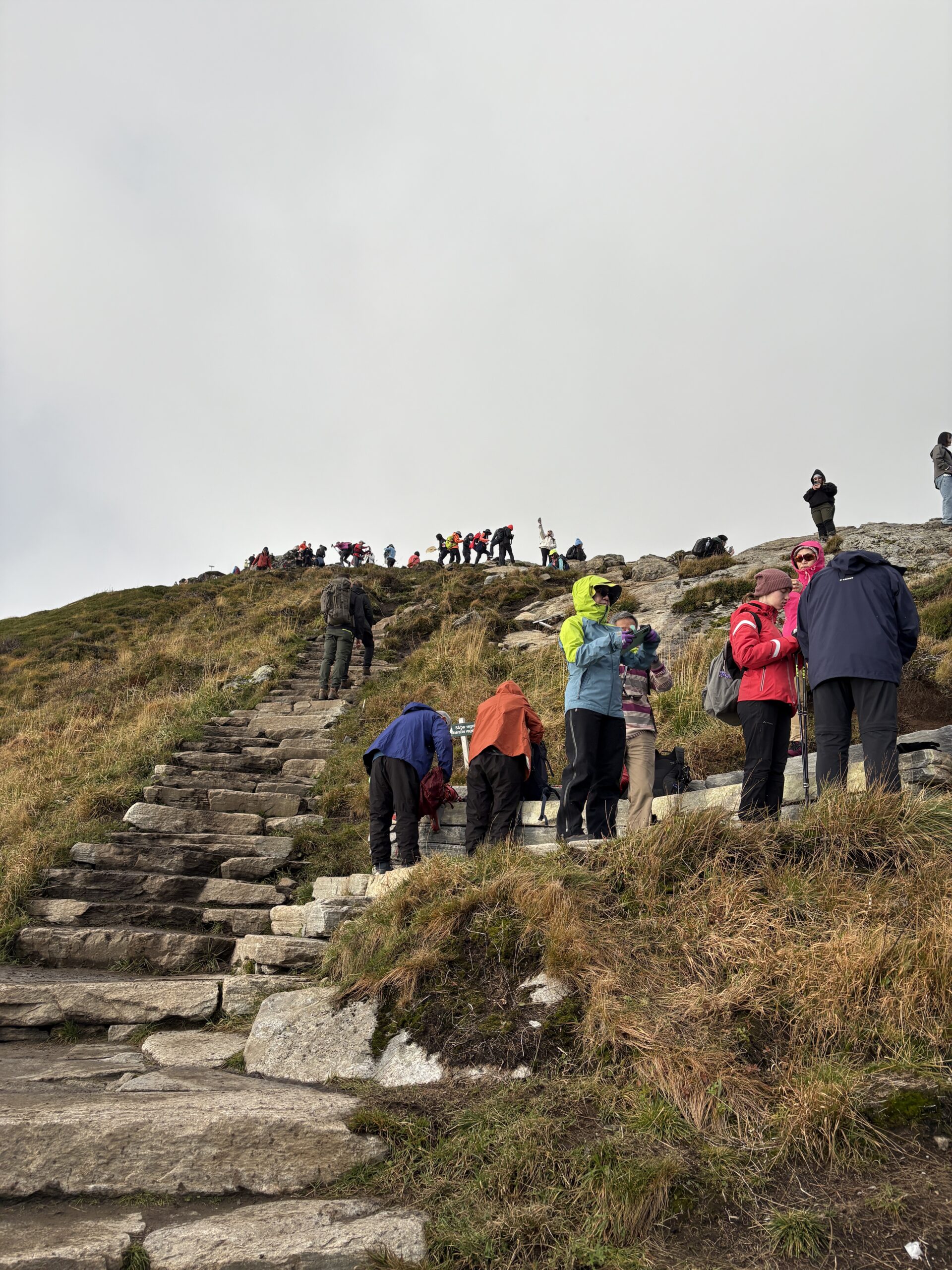 Der steile Aufstieg zum Gipfel des Reinebringen selbst wurde vor ein paar Jahren von nepalesischen Sherpas zu einer steinernen Treppe ausgebaut. Immer noch brutal steil führen 1978 Stufen auf den Berg herauf. Trotz guter Kondition wird hier jeder zu der ein oder anderen Pause gezwungen.
