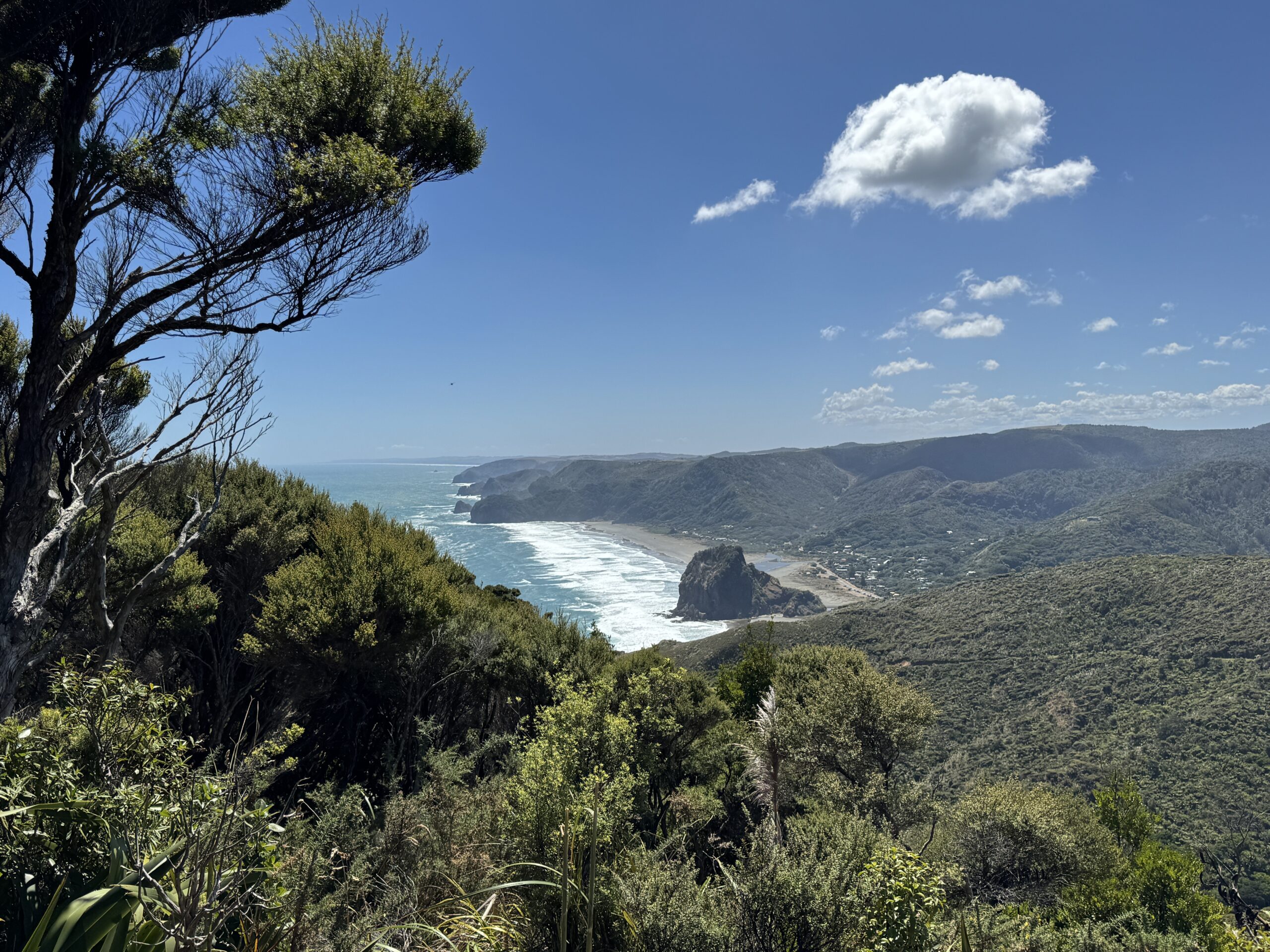 Piha Beach beeindruckt mit seinem schwarzen Vulkansand, den wilden Wellen und dem markanten Lion Rock, der mitten am Strand aufragt. Wahnsinn wie Surfer die hohen Wellen reiten. Um die spektakuläre Landschaft noch besser zu genießen, haben wir eine kleine Wanderung auf den Hikurangi Track unternommen. Der Weg war stellenweise steil, aber die Aussicht von oben war jede Anstrengung wert: Vor uns erstreckte sich die gesamte Bucht von Piha, das tiefblaue Meer und der imposante Lion Rock. Der Mix aus rauer See und grünen Steilklippen wird uns noch lange in Erinnerung bleiben.