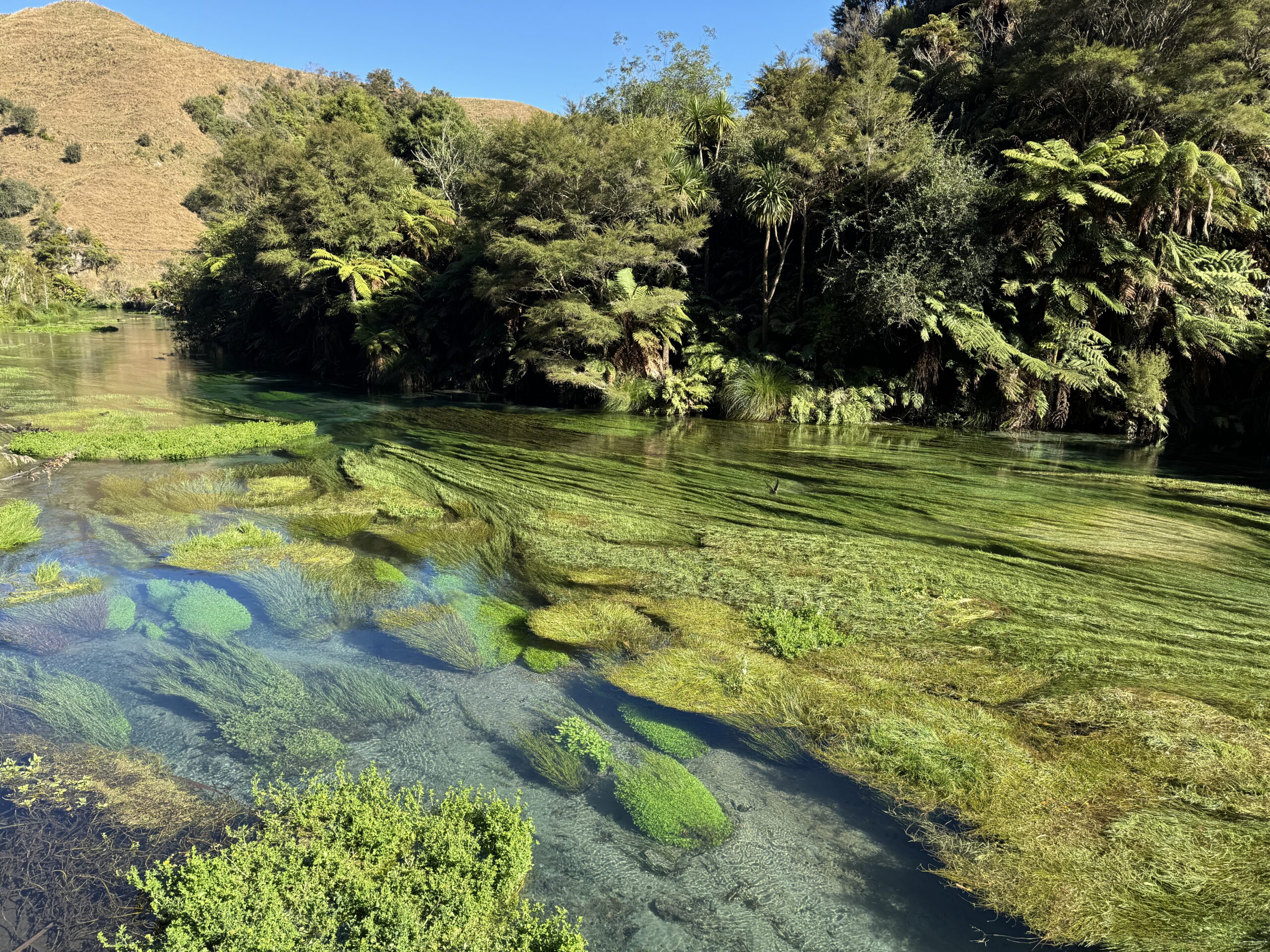 Heute stand ein ganz besonderer Tag auf unserem Reiseplan. Nach rund 1,5 Stunden Autofahrt erreichten wir am Vormittag den Waihou Walkway und die Bluesprings.