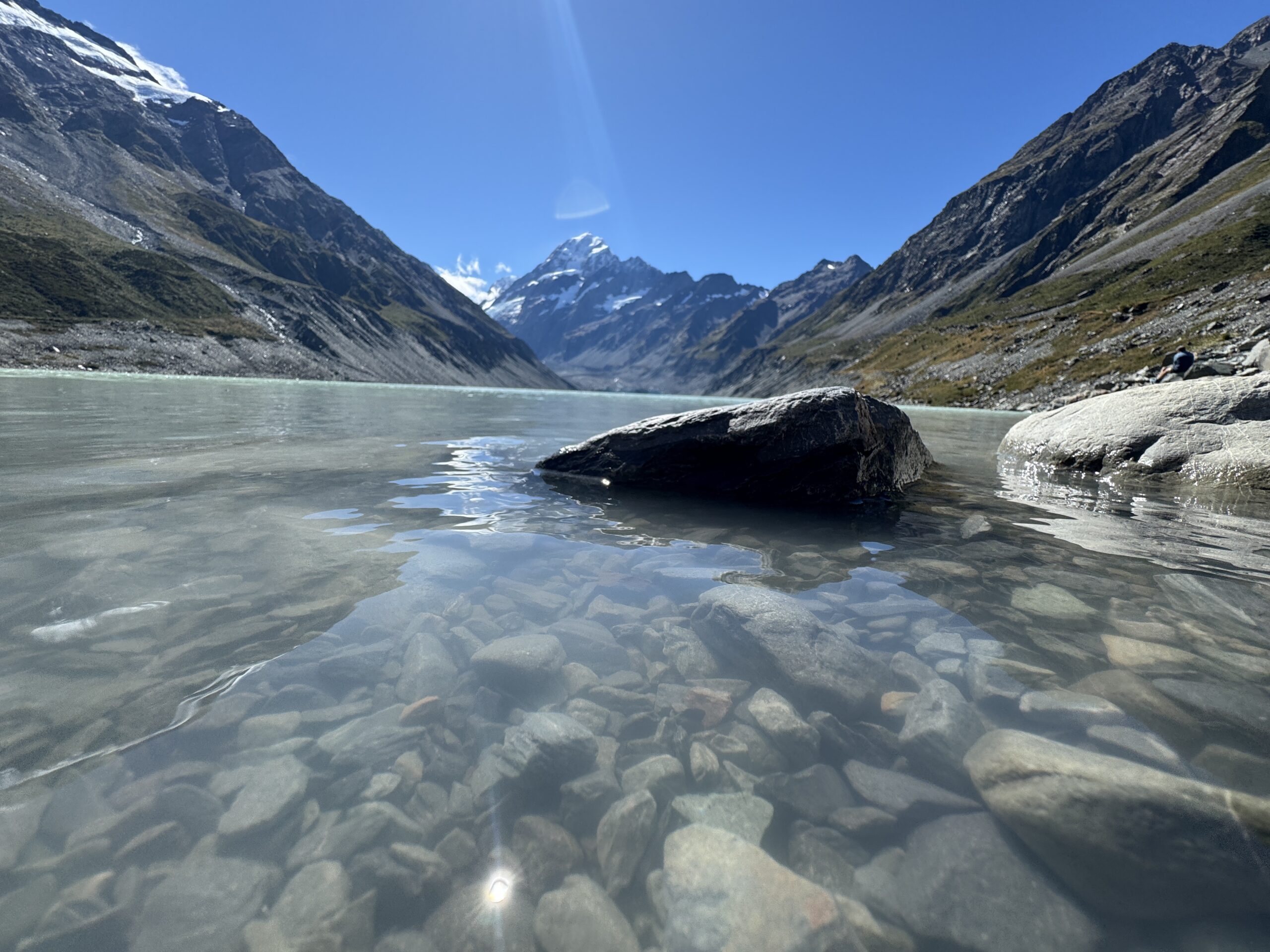 Am Hooker Lake selbst lohnt es sich, ein wenig nach einem ruhigen Platz zu suchen – mit ein wenig Geduld findet man eine abgelegene Ecke, um die grandiose Aussicht in Ruhe zu genießen.