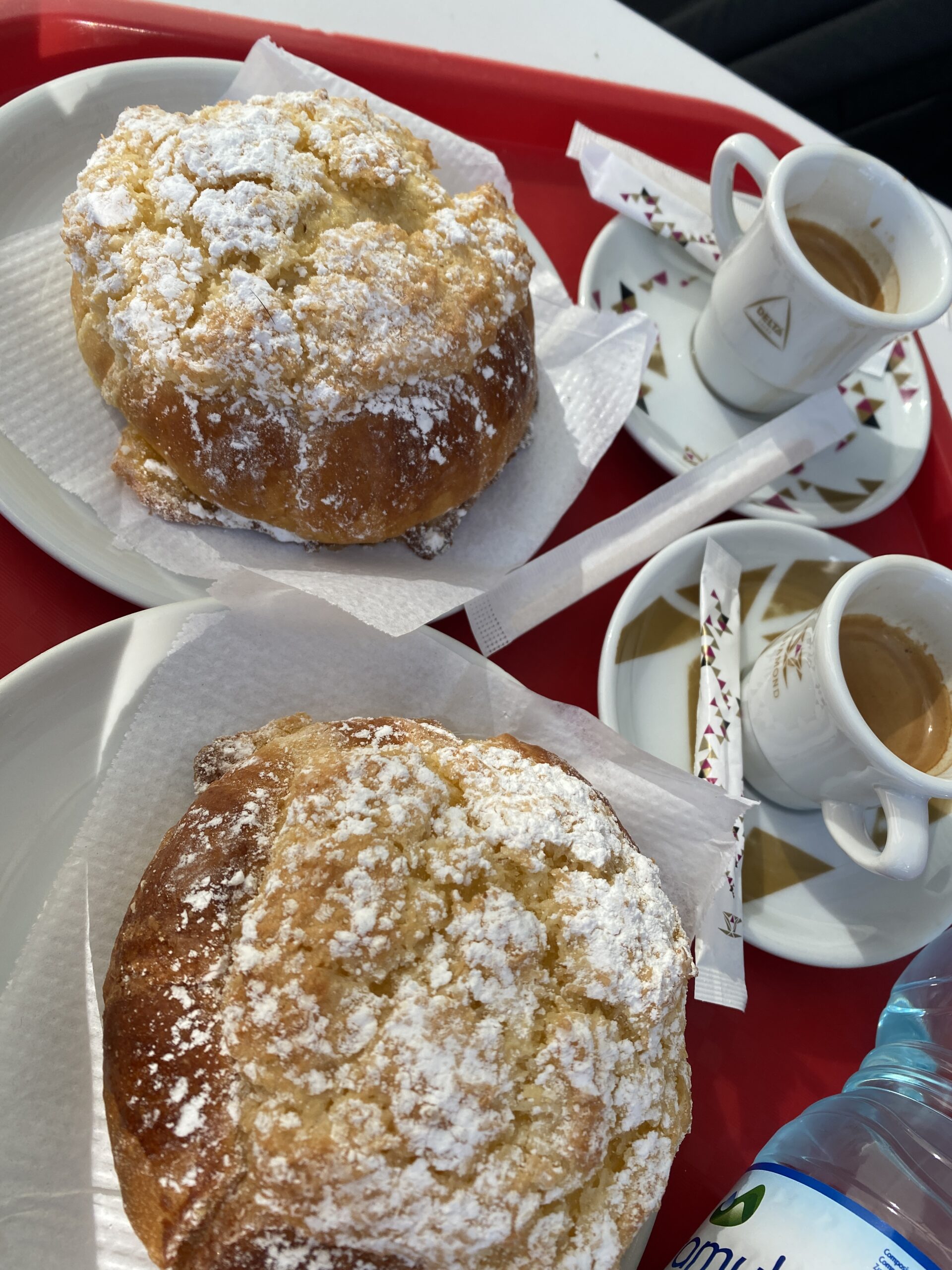 Wassersport macht glücklich, aber auch hungrig, daher sind wir in dem Pastelaria A Baguette vom Morgen noch einmal eingekehrt. Der Espresso war zu köstlich und das Gebäck lockte für einen weiteren Besuch.