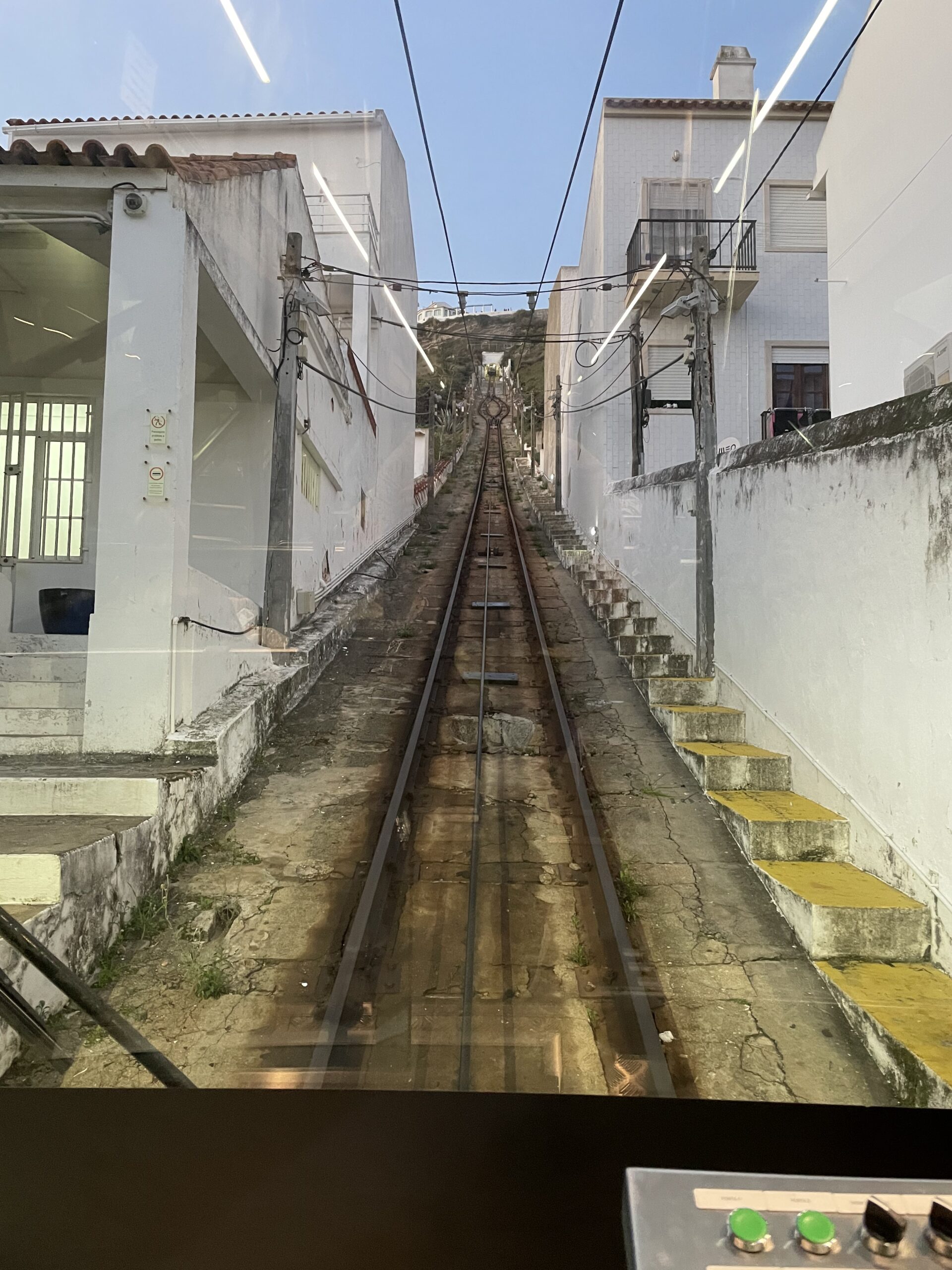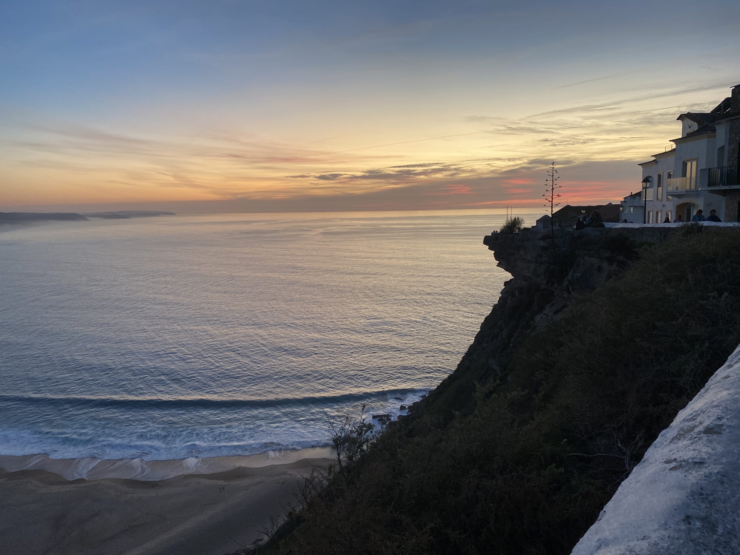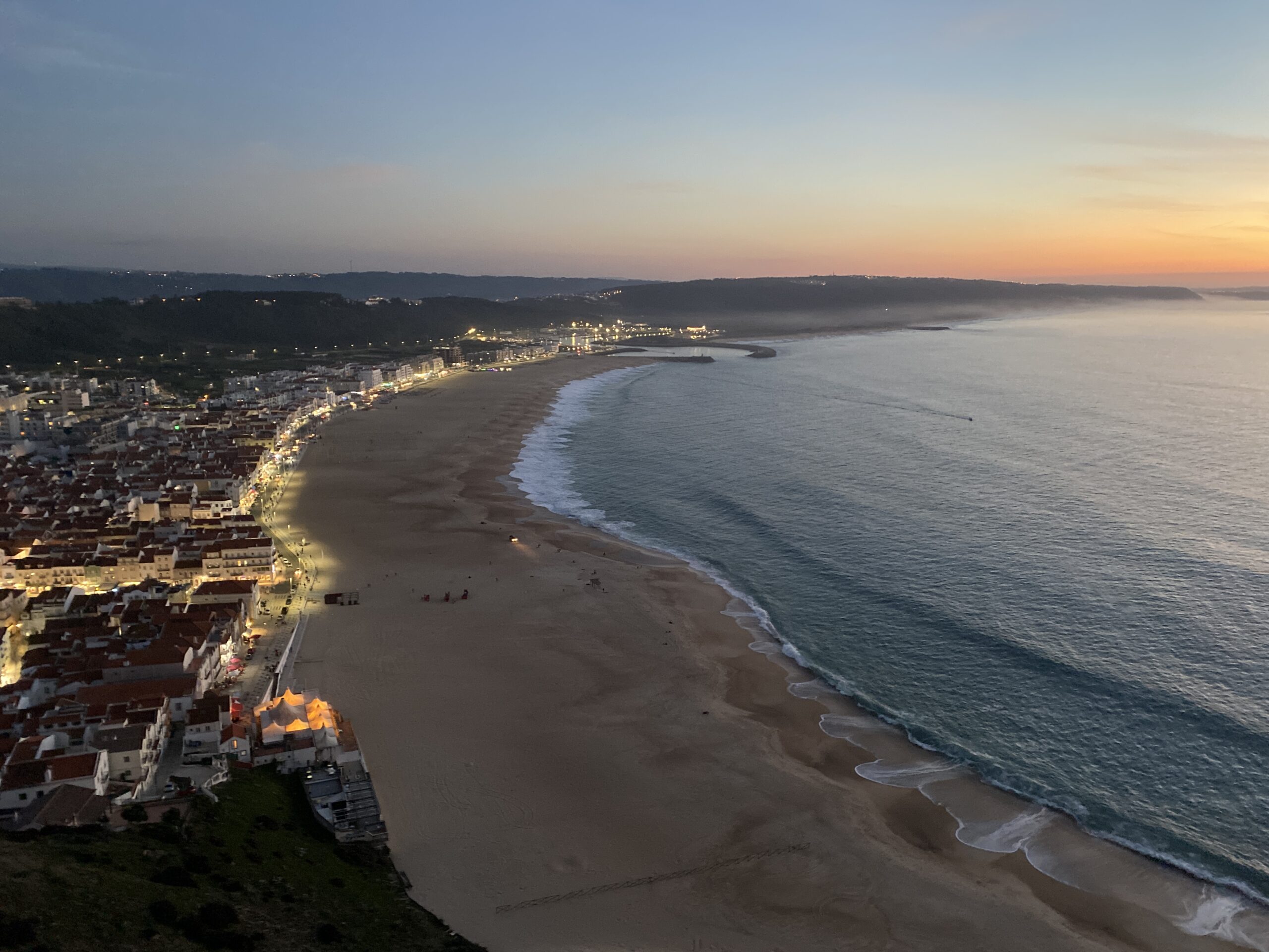 Nachdem wir das Zimmer im Hotel Magic (85,00 € inkl. Frühstück) bezogen haben, welches hübsch und vor allem Zentral gelegen ist, haben wir uns nach einer kräftigen Dusche zu der Nazaré Tram (4,00 € p.P. rauf & runter) gemacht. Von hier kommt man den steilen Berg hoch, um eine wunderschöne Aussicht über den Strand zu erhalten. Wir hatten Glück und kamen direkt mit dem Sonnenuntergang oben an, sodass uns eine atemberaubende Aussicht geboten wurde.