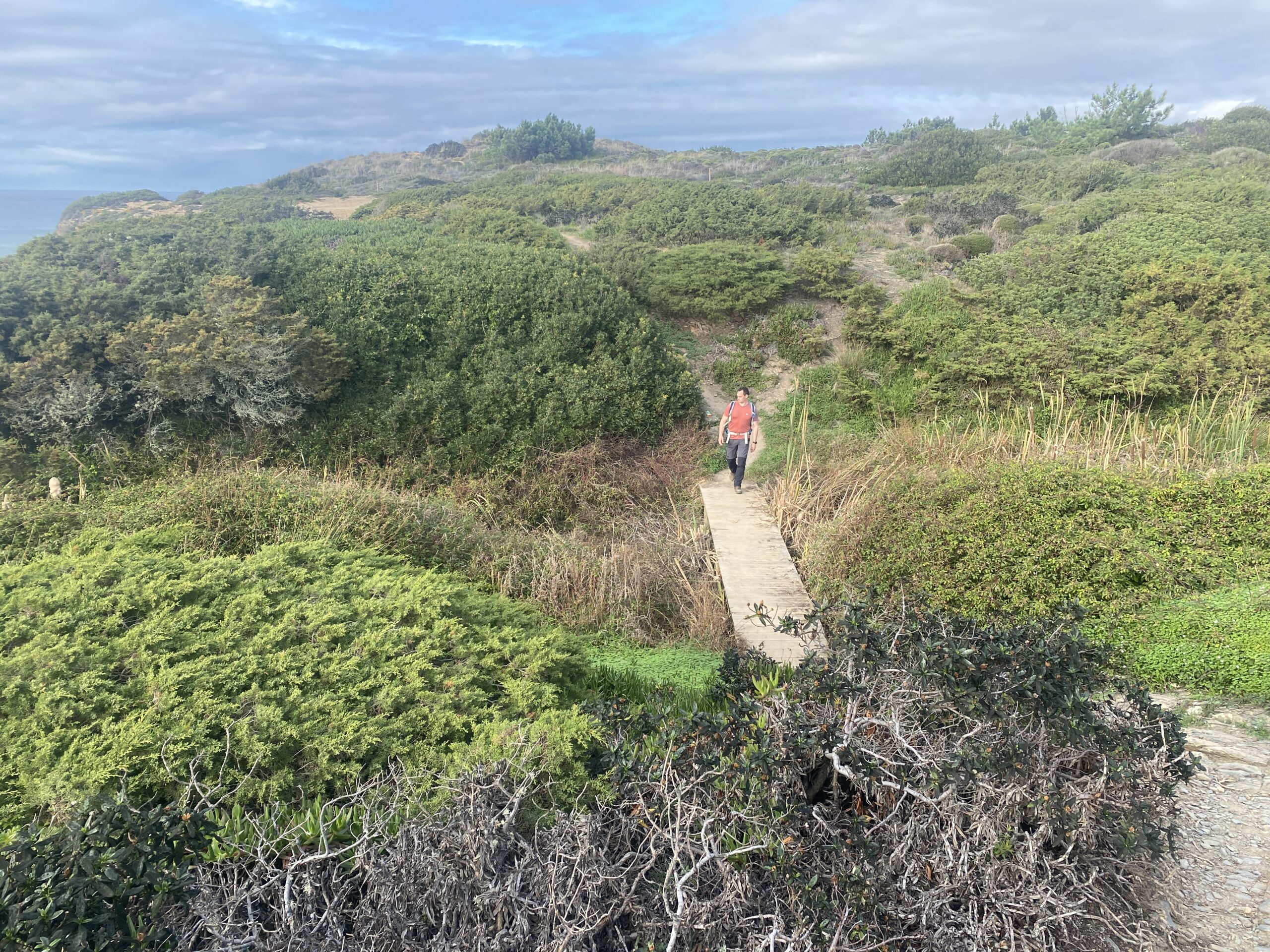 [07. November 2022] Nachdem wir das leider sehr nach Massentourismus schmeckende Frühstück hinter uns hatten, machten wir uns von Lagos nach Vila Nova de Milfontes auf. Einen Zwischenstopp legten wir ungefähr in der Mitte der Strecke am Monte João Roupeiro ein. Hier starteten wir unsere 3 1/2 Stündige Rundwanderung an der Alentejo-Küste.