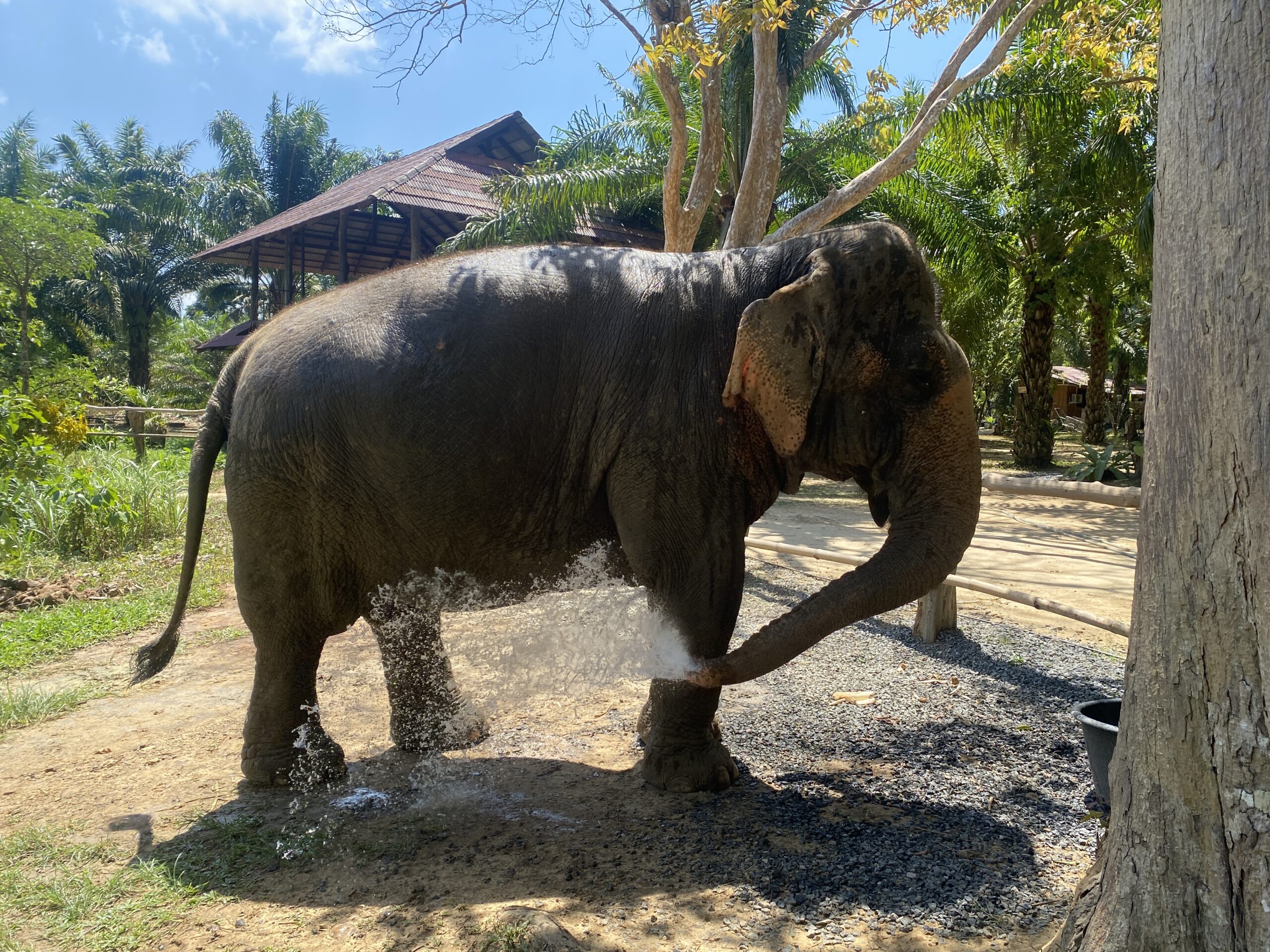 Der zweite Tag im Khao Sok Nationalpark führte uns zu einem Elefant Sanctuary. Elefantenbesuche sind in Thailand oft verpönt, da viele Elefanten unter schlechten Bedingungen leiden und misshandelt werden. Daher kam für uns nur eine Auffangstationen für gerettete Elefanten in Frage. Hier in Khao Sok kann man zwei Elefantendamen besuchen. Eine aus einem Zirkus und eine aus einer Holzfabrik gerettet. Wir konnten einiges Wissenswertes über den Elefantentourismus in Thailand und die Elefanten selbst lernen. Die Elefanten waren unendlich an uns interessiert, was bestimmt an den Bananenkörbchen lag, die jeder Teilnehmende (rund 10 Personen) bekam. Ein kleiner Spaziergang, viele Bananen, die in den Mündern der Elefantendamen verschwanden und tolle Fotos später konnten wir bei einem Snack noch Blicke auf die beiden Dickhäuter werfen, die uns über das Gelände folgten. Die Tour von 1,5 Std (32€ p. P.) ist ein absolutes Muss, wenn man in Khao Sok ist. Sich frei mit Elefanten bewegen zu können, die zu füttern und hautnah zu erleben ist atemberaubend.