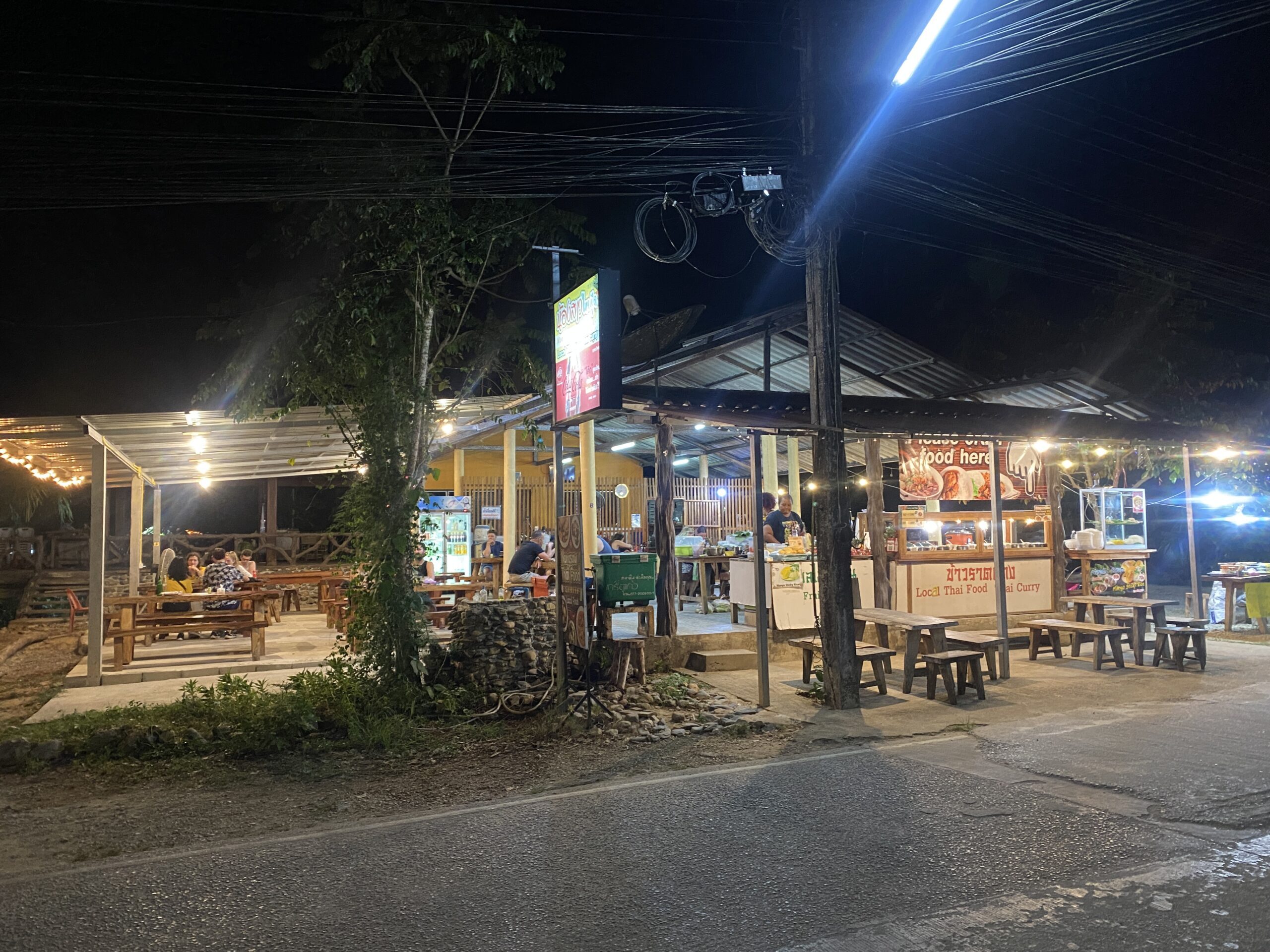 Zurück über den See und eine Stunde Autofahrt später erreichten wir wieder unsere Unterkunft, in der die wohlverdiente Dusche wartete. Den Abend aßen wir wieder im Nongsaw Thai Food, einem kleinen Stand mit ca 50 Plätzen zum sitzen und essen. Hier gibt es das wahrscheinlich beste Curry in dem kleinen Dorf. Die Auswahl variiert im Schärfegrad und in der Auswahl, aber es wird immer jeder satt. Und das für gerade einmal 80 Baht (große Portion Reis und Kelle Curry) oder 100 Baht für eine Portion Reis und zwei Portionen Curry (David´s Favorit).