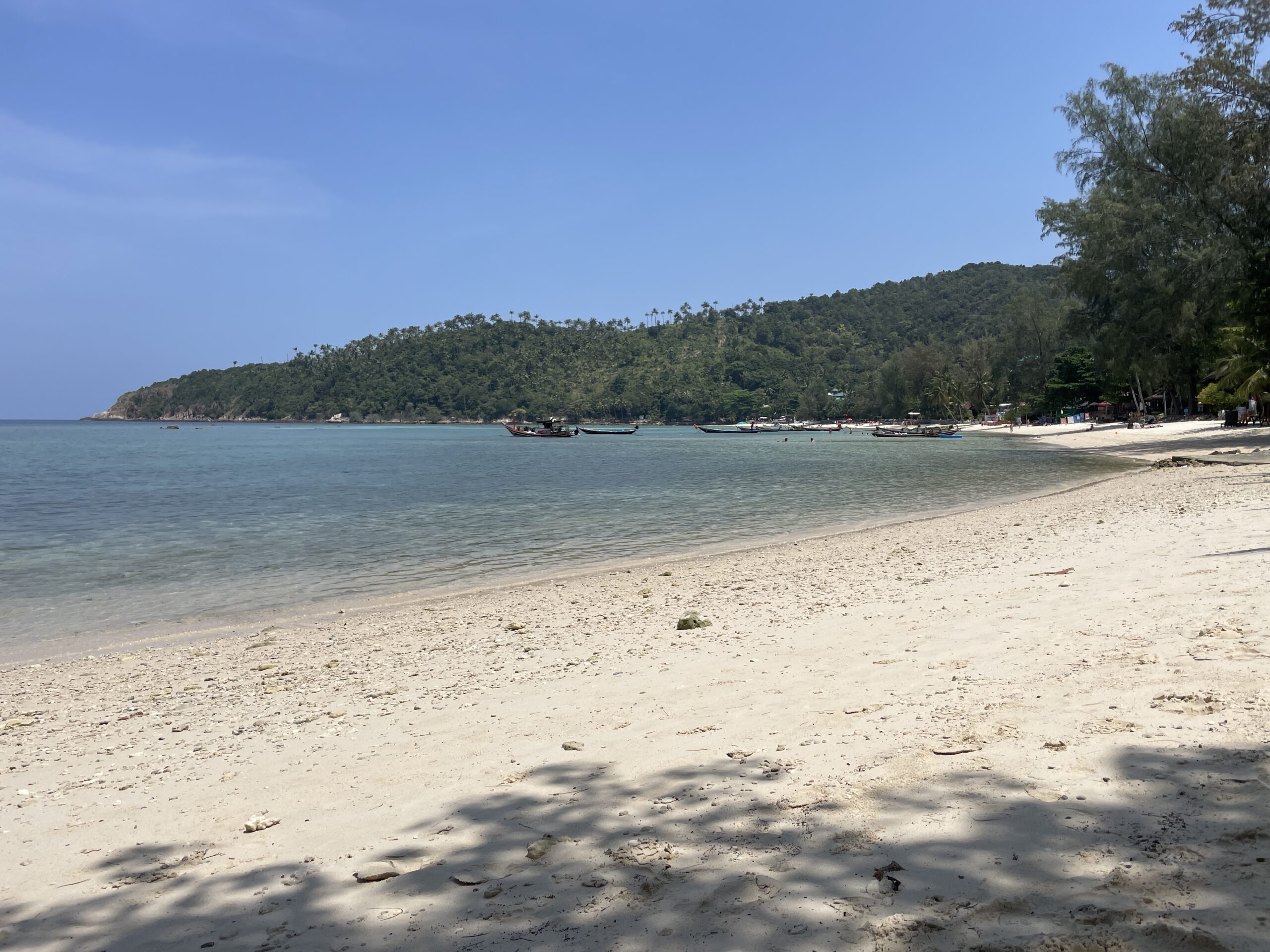 Der letzte vollständige Tag auf Koh Phangan wollten wir noch einmal am Strand und mit Schnorcheln verbringen. Da wir bis 14:30 Uhr noch unseren Roller hatten, ging es rund 5km an der Küste entlang in Richting Norden. Hier wollten wir uns auf dem Weg zum Chaloklum Beach die große Sandbank anschauen, die am Ko Ma Beach die kleine Insel im Norden (Koh Ma) mit Koh Phangan verbindet. Leider hatten wir auch nach nun mehreren Inseltagen die Gezeiten vergessen. Egal, ein kurzer Halt am Strand war hier trotzdem allemal drin, zumal der Ko Ma Beach ruhig und trotzdem wunderschön ist. Nach ca einer Stunde setzte wir unsere Fahrt zum eigentlichen Tagesziel, dem Chaloklum Beach fort. Diesen erreichten wir nach ca. 5 Minuten mit dem Roller und nach genau der gleichen Zeit waren wir auch schon wieder auf dem Rückweg. Der Chaloklum Beach war für uns leider keine wirkliche Reise wert, zumal der Zugang zum Strand durch ein kleines, sehr dreckiges Dorf und Hinterhöfe führt. Unsere Alternative war der Haad Yao Beach im Süden vom Salad Beach. Der Rückweg zu diesem Strand hat sich dafür umso mehr gelohnt. Hier konnten wir mit sehr wenig anderen Menschen das Meer genießen und eine Runde Schnorcheln. Im Gegensatz zum Strand am Salad Beach ist der Sand hier noch einmal um einiges feiner. Laut Maren sogar schöner als in der Karibik.