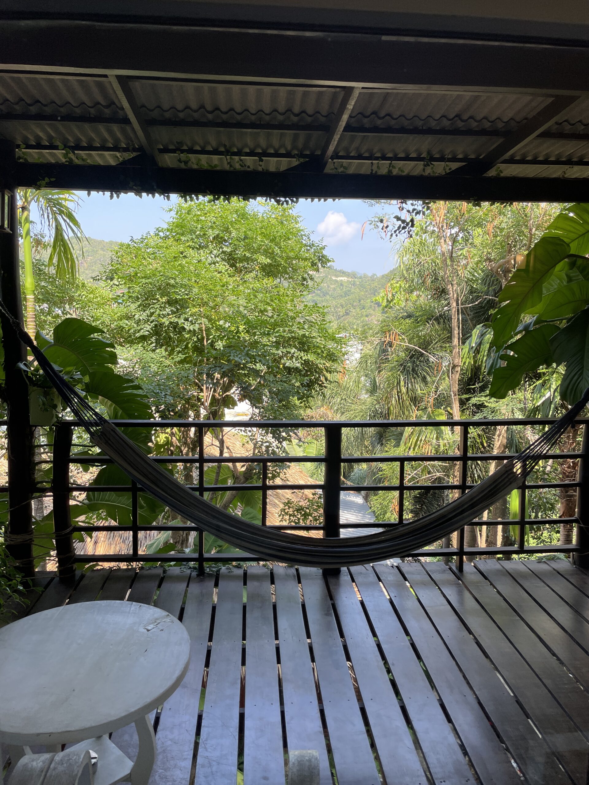 Das Cookie‘s Salad Resort (124€ für 3 Nächte) selbst liegt an einem steilen Berg und die einzelnen Unterkünfte sind mit teils steilen und schmalen Wegen miteinander verbunden. Absoluter Pluspunkt: direkt, also wirklich direkt und keine 5m unterhalb beginnt der kleine aber malerische und vor allem sehr ruhige Strand. Hier gönnten wir uns bis um Einchecken um 14:00 Uhr noch den ersten Sonnenbrand des Tages. Unser Zimmer selbst liegt etwas überhalb der Rezeption (mehr wir ein Bambus Carport) und vereint Davids lang ersehnte Hängematte mit einem schönen Blick auf die Bucht, die sich hinter ein paar Bäumen versteckt. Nach dem Erfrischen hatten wir beide Hunger und wurden zum Stillen an einer Strandbar unweit von unserem Resort fündig. Leider etwas westlich angehaucht enttäuschte uns das bestellte Curry jedoch auf Grundlage der Erfahrungen der letzten Tage. Das solide TK Curry aus dem Supermarkt hätte hier sicherlich die Nase vorne gehabt.