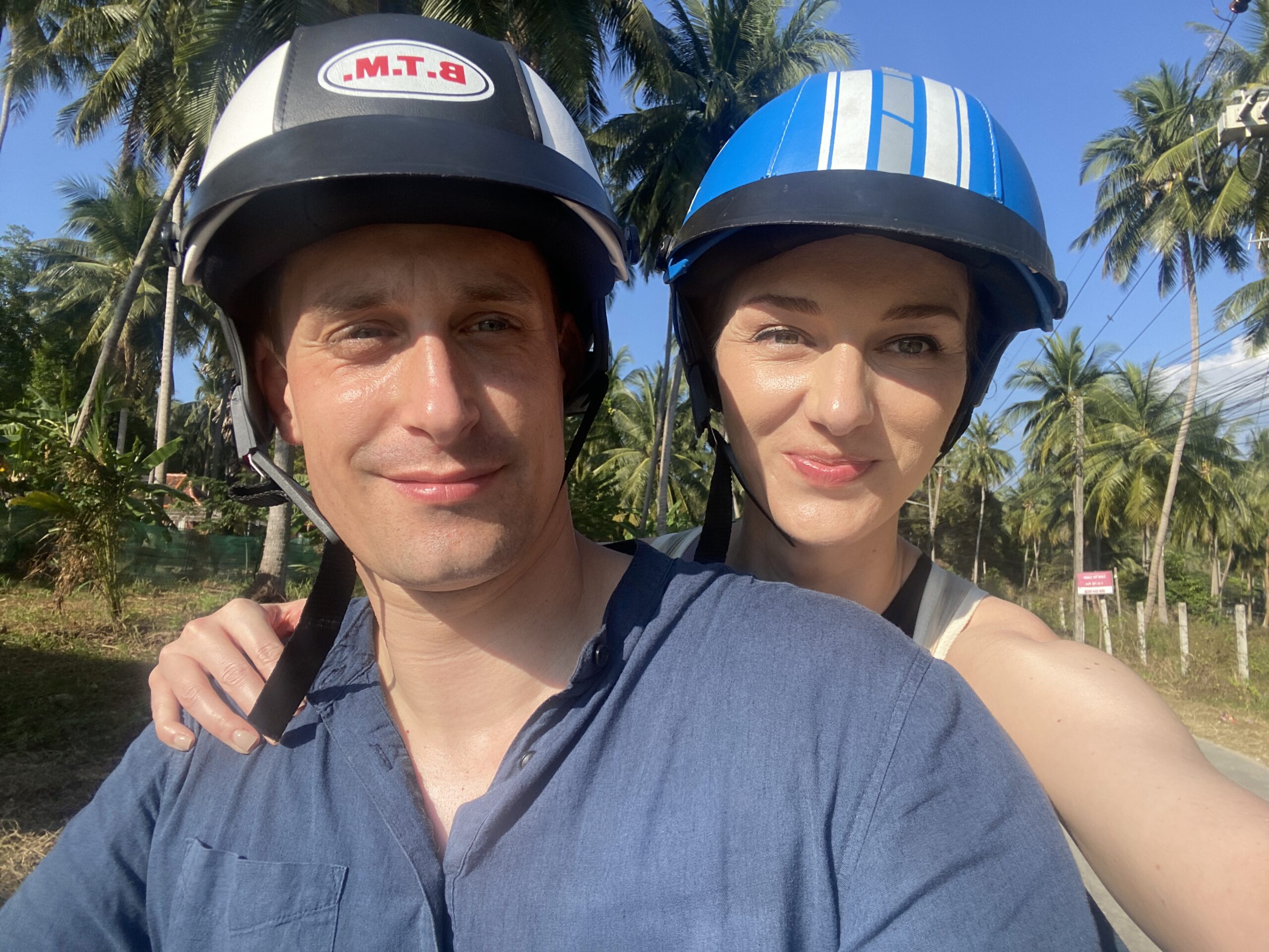 Für den Abend (17-21 Uhr) hatten wir einen Thai-Kochkurs (38€ p. P.) gebucht. Ganz unkompliziert konnte ich mit Kik (Proud Home Cooking Class) über WhatsApp die Buchung und die Kochwünsche abklären. Wir mieteten uns gegen frühen Nachmittag einen Roller für 24 Std. (6,50€) und führen die Küste Richtung Süden ab. Einen Stopp machten wir zehn Minuten später in der Wave Bar und Slow Café. Ein wunderschöner Spot direkt an einer Steilküste, welcher erst vor weniger Wochen eröffnete. So konnten wir etwas Schatten, Meereswind und kühle Früchteshakes genießen. Bevor unsere weitere zehnminütige Fahrt in Richtung Thai-Kochkurs weiter ging.